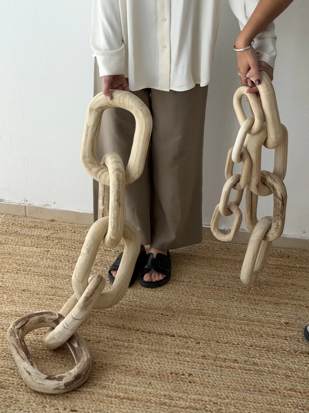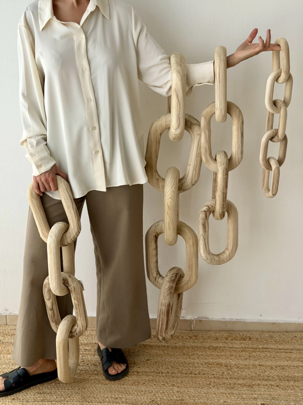 Un detalle simple que suma calidez y textura. Hecha en madera de Paulownia, éstas cadenas decorativas son ideales para colocar sobre una mesa, repisa o bandeja. Aportan ese toque natural y relajado que transforma cualquier espacio.