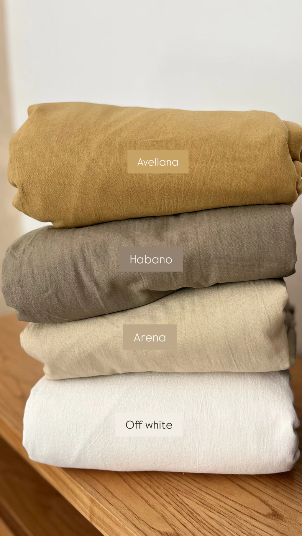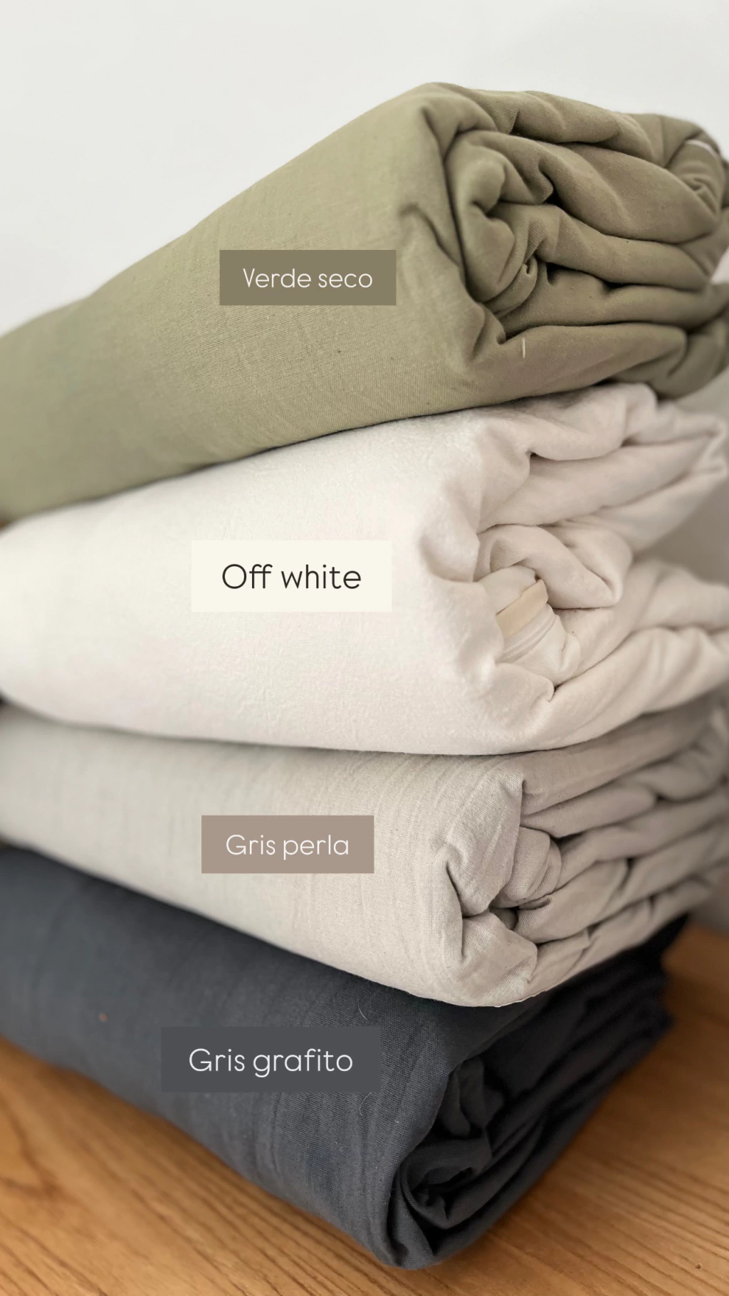 Está confeccionada de un lado en tusor (color a elección) y del otro en lienzo color natural. Es decir, tenes 2 colores en una misma funda para que la uses de cualquiera de los dos lados y combines con distinta ropa de cama. Ideal combinar con almohadones y pie de cama de ADA.