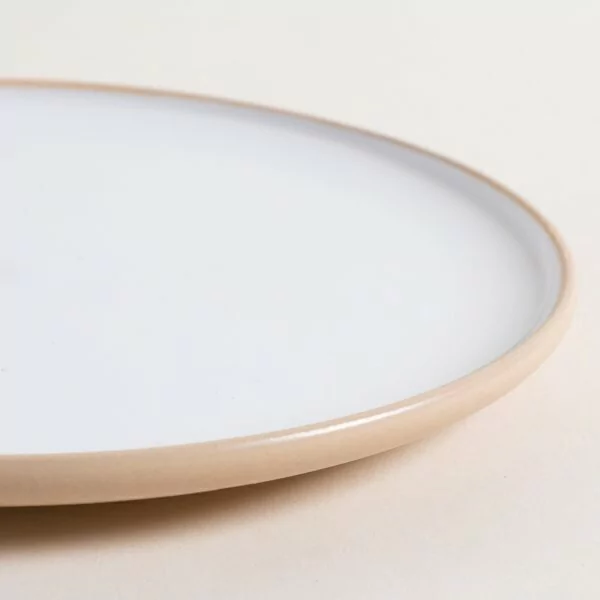 Este set de 6 platos playo Bakor en color blanco brillante está hecho de cerámica de alta durabilidad, perfecta para darle un toque sofisticado y rústico a tu mesa. Su diseño presenta un acabado rústico con una base en color natural, lo que le otorga un estilo versátil y auténtico.