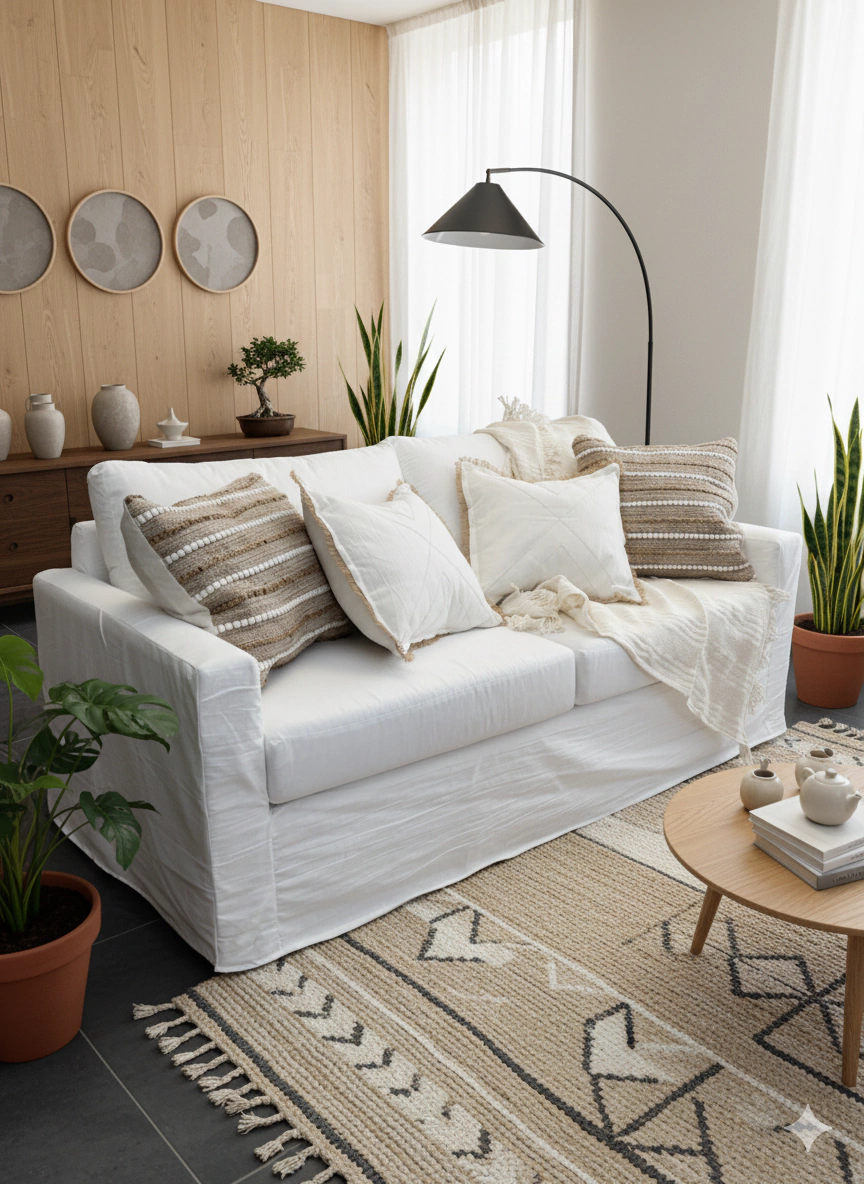 Tapizado en lienzo color crudo, con funda en tusor. Incluye: almohadón de base de alta densidad, almohadones para el respaldo. ¡Confeccionamos tu funda en color a elección! Son desmontables aptas Lavarropa.