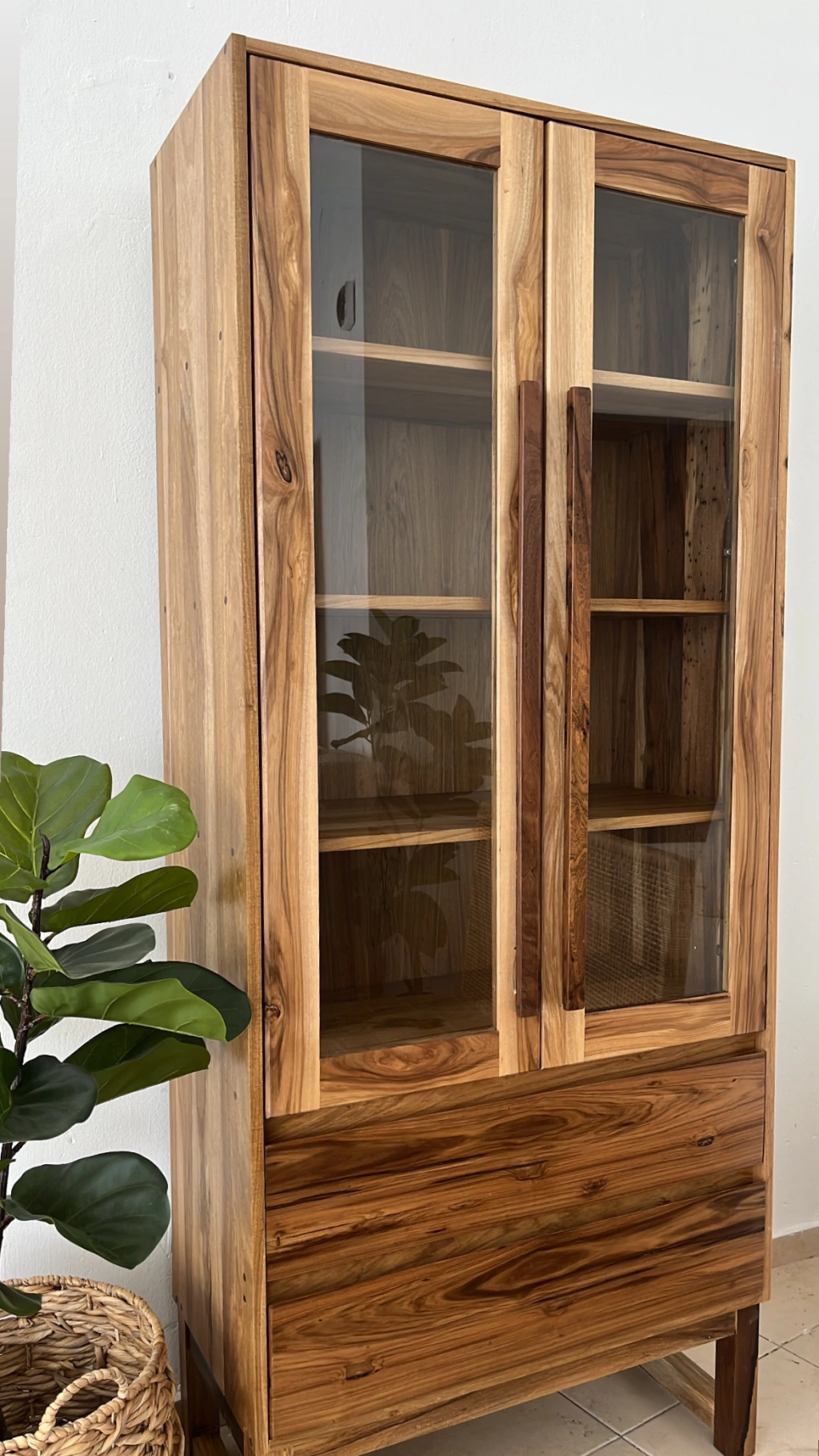 Un mueble que enamora a primera vista. Esta vitrina o vajillero combina la calidez de la madera natural con la elegancia del vidrio, perfecta para exhibir tus objetos favoritos, vajilla o tesoros deco.
